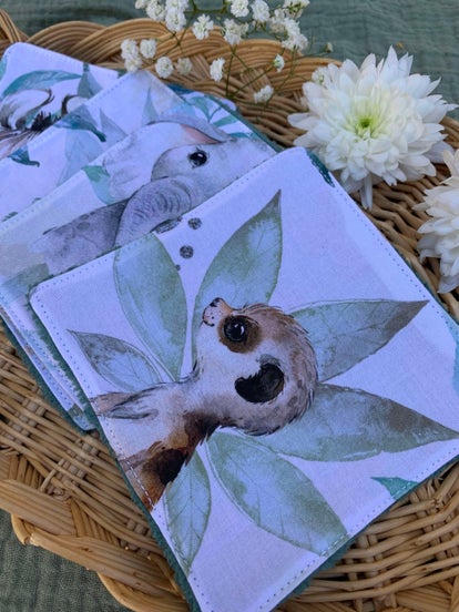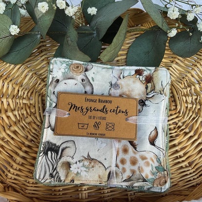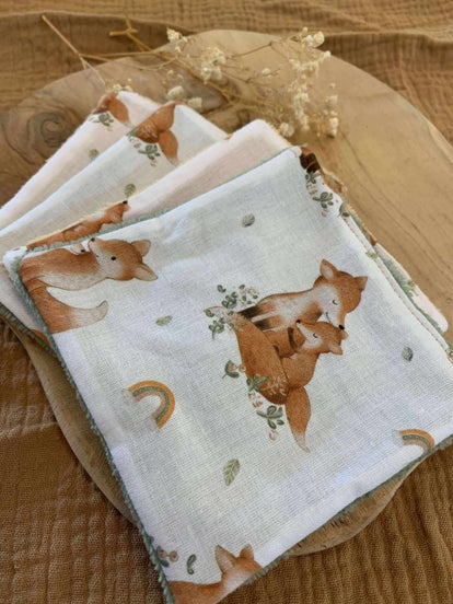 Chaque coton est composé d’une face ultra douce en tissu doudou ou éponge bambou, et d’une face en coton imprimé aux motifs tendres et poétiques. Une alternative écologique et économique aux cotons jetables, pour accompagner bébé avec douceur tout en respectant la planète 🌍
