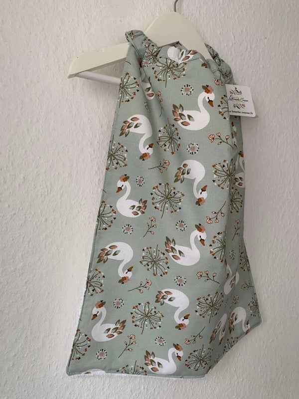 Ajoutez une touche de charme à l'heure des repas avec notre grand bavoir ficelle. Ses cygnes 🦢 plaisent aux petits et aux grands, tout en offrant une protection efficace. Facile mettre grâce à ses élastiques , ce bavoir est parfait pour les repas sans tracas.