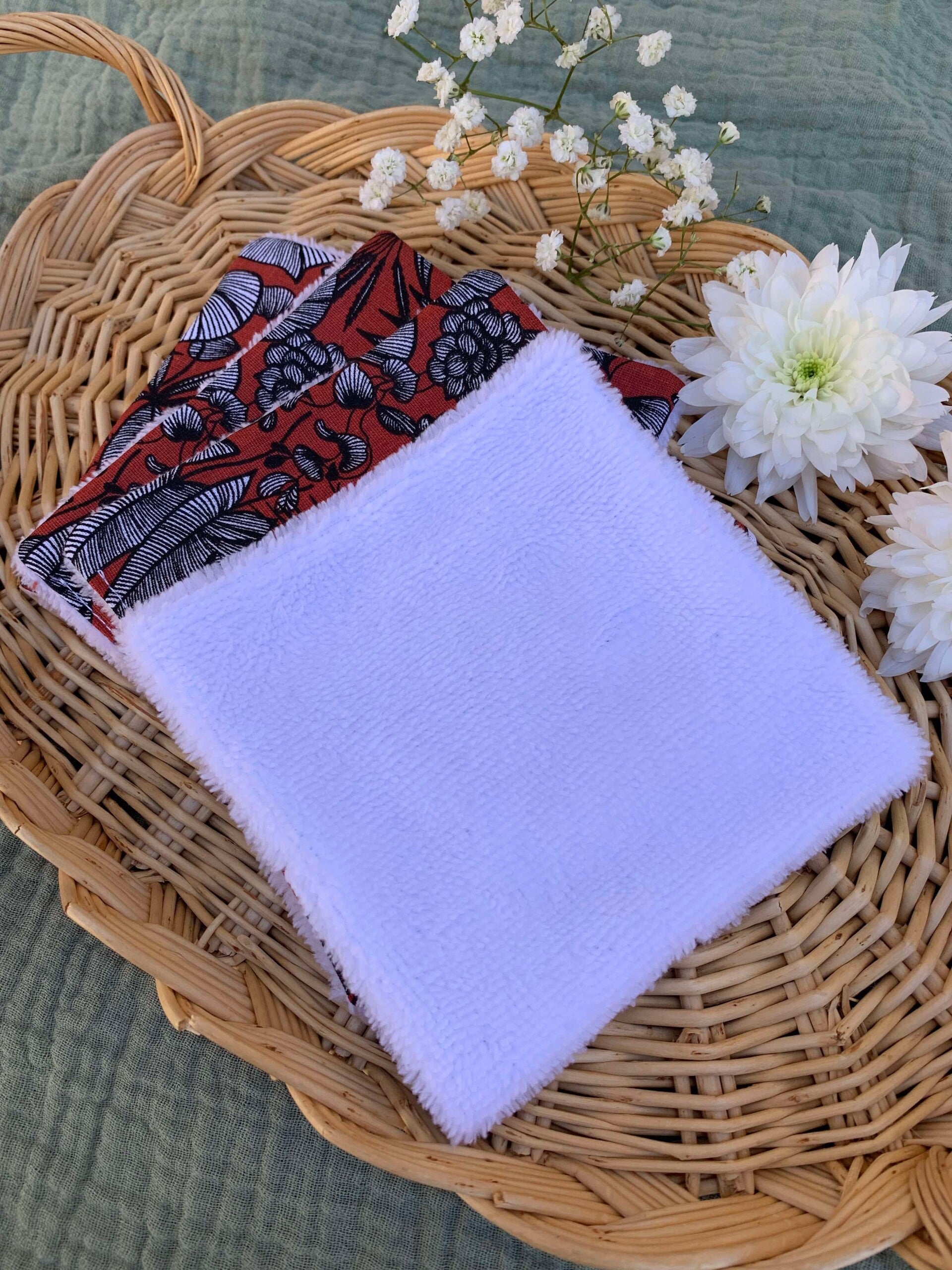 Chaque coton est composé d’une face en tissu éponge bambou pour un nettoyage en douceur, et d’une face en coton imprimé, aux motifs délicats qui ajoutent une touche de poésie à votre routine.