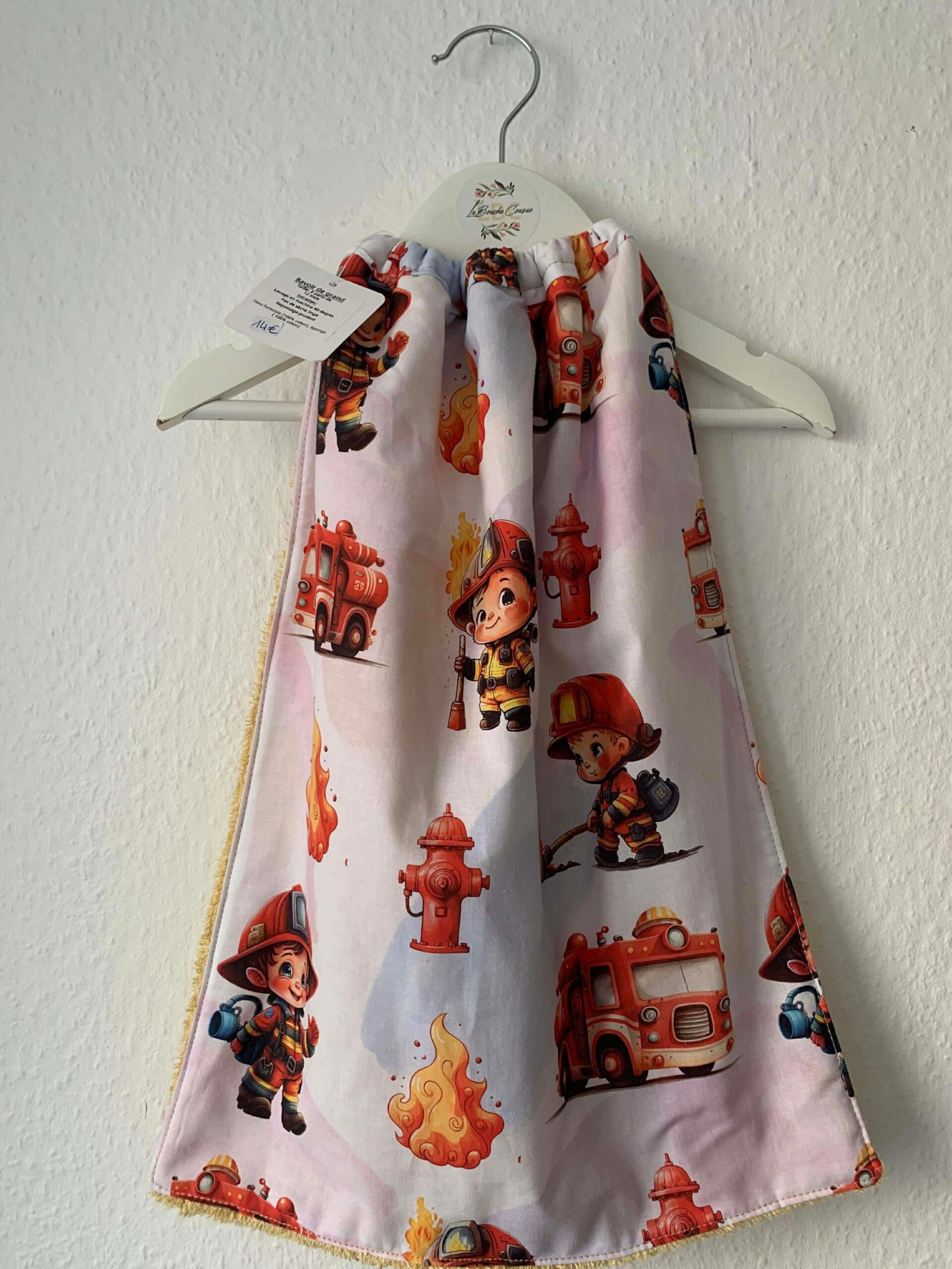 Ajoutez une touche de charme à l'heure des repas avec notre grand bavoir. Ses pompiers plaisent aux petits et aux grands, tout en offrant une protection efficace. Facile mettre grâce à ses élastiques , ce bavoir est parfait pour les repas sans tracas.